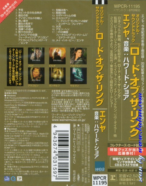 Soundtrack, The Lord of the Rings I, WEA, WPCR-11195