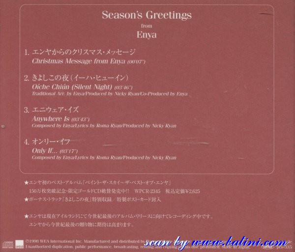 Enya, Amarantine, Special Christmas, WEA, WPCR-12528/R