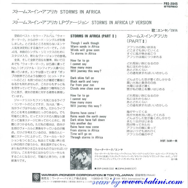 Enya, Storms in Africa II, Storms in Africa I, WEA, PRS-2045