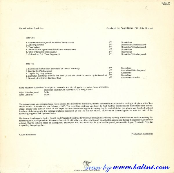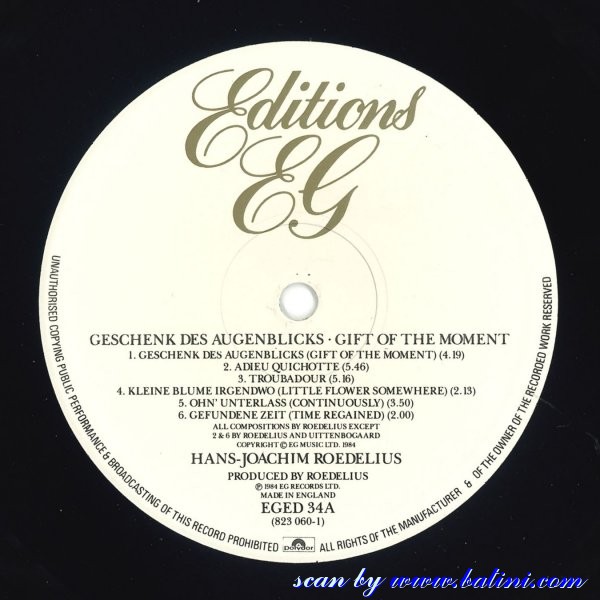 Roedelius, Gift of thre Moment, EditionsEG, EGED 34
