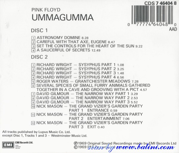 Pink Floyd, Ummagumma, EMI, CDS 7 46404 8