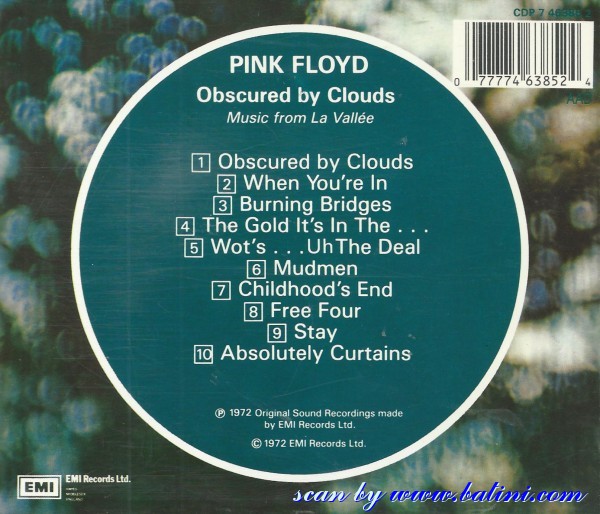 Pink Floyd, Obscured by Clouds, EMI, CDP 7 46385 2