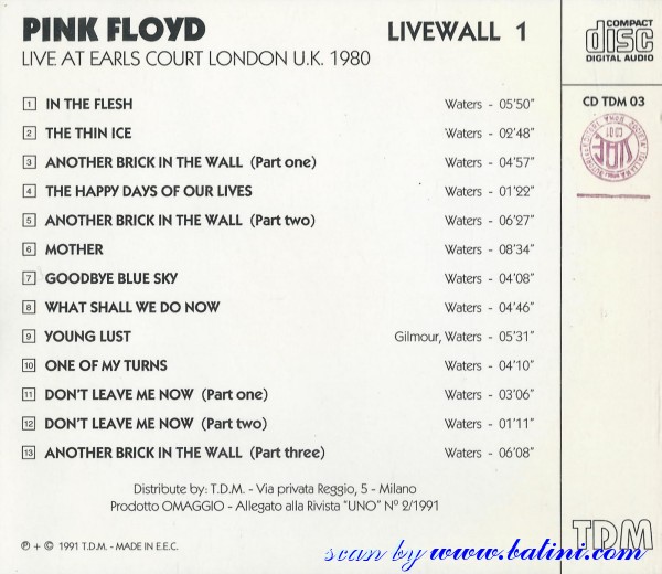 Pink Floyd, Livewall 1, Other, CD TDM 03