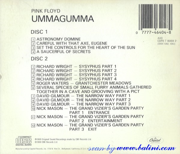 Pink Floyd, Ummagumma, Capitol, CDPB 7 46404 2