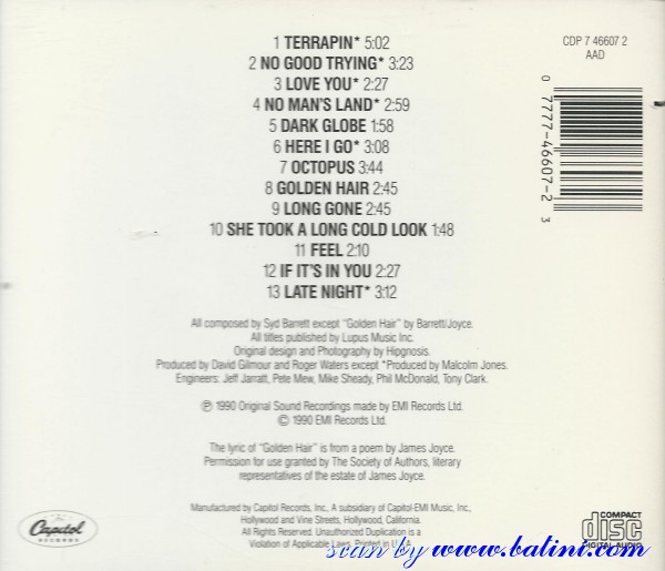 Pink Floyd, The Piper at the, Gates of Dawn, EMI, CDP 7 46384 2