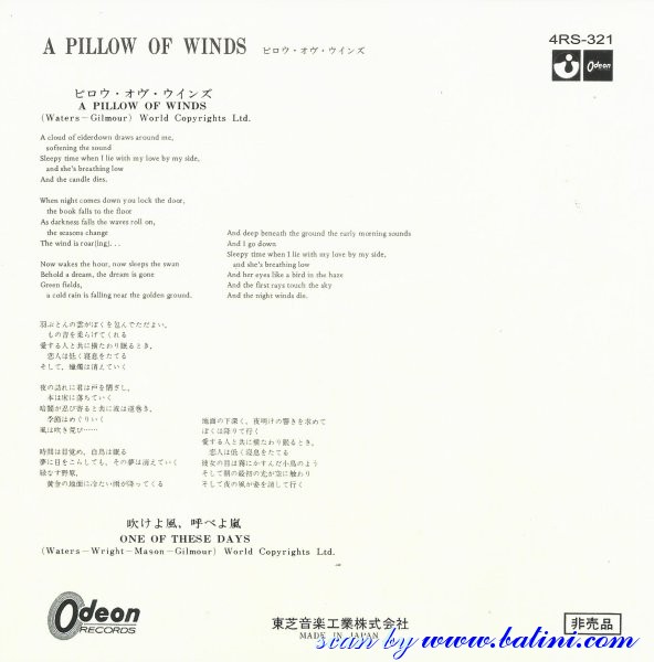 Pink Floyd, A Pillow of Winds, One of These Days, Odeon, 4RS-321